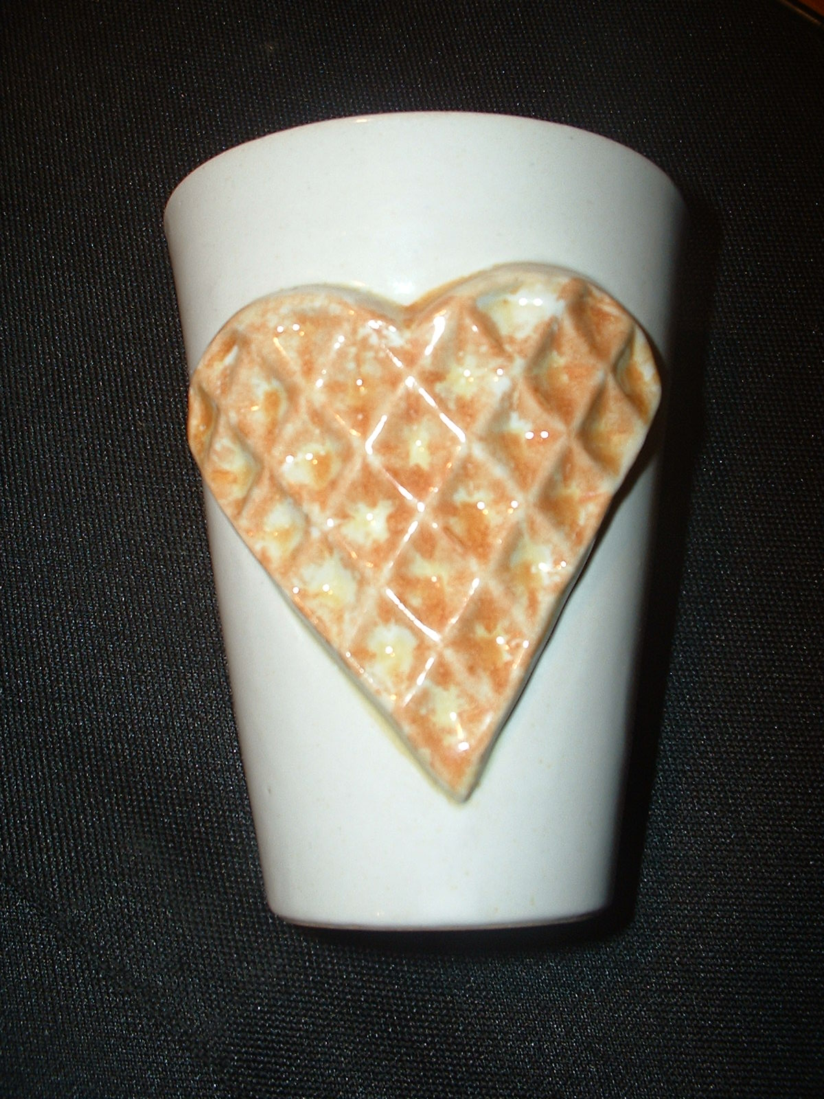 ...handgefertigt... ...ca.11,5cm hoch / 9,00cm Durchm. ...mit einem Keramik-Herz-Henkel.. ...6,50 Euro/Stück |